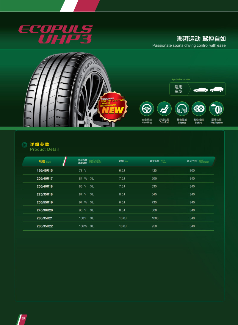 全新設(shè)計運動型花紋,應(yīng)用高含量白炭黑配方,提供優(yōu)秀的抗?jié)窕阅埽炫冗\動,駕控自如。